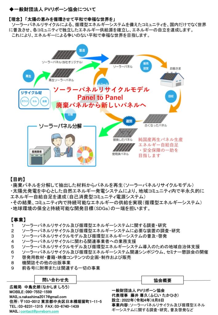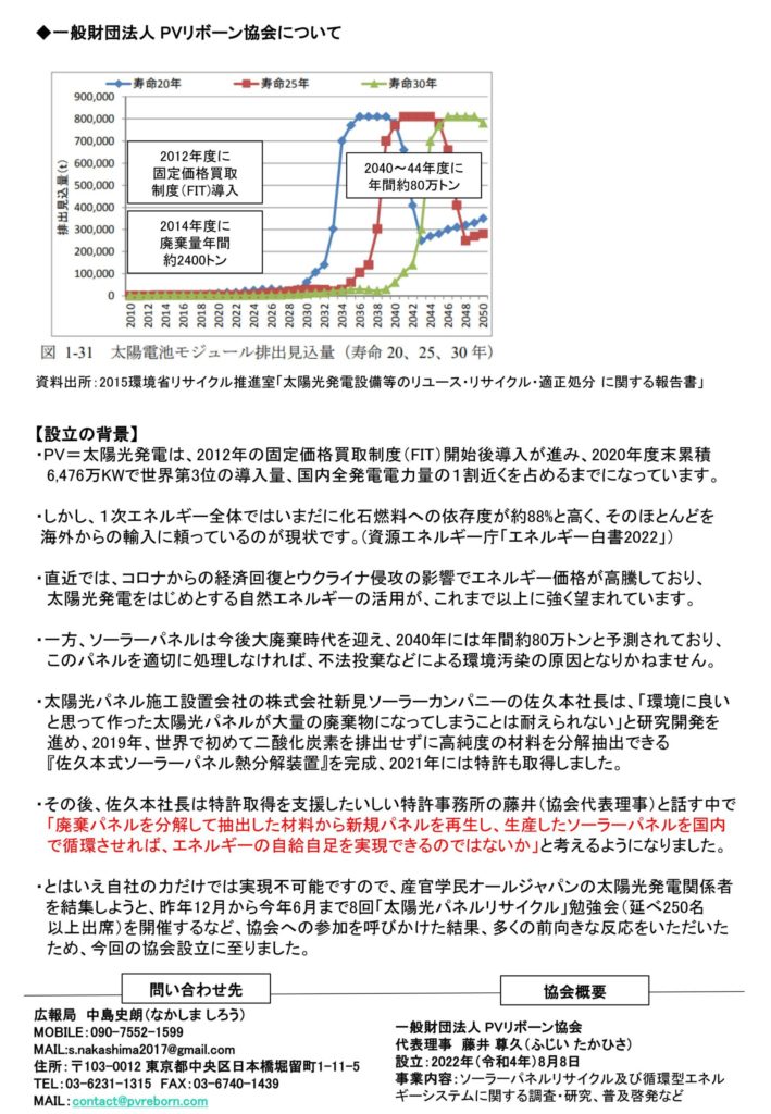 Press Release Noriaki Yamashita, Senior Researcher at the Institute for Sustainable Energy Policies, NPO, well speak at the 3rd PV Reborn Association Seminar.